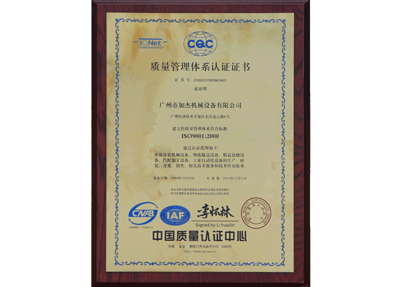 • 質(zhì)量管理體系認(rèn)證證書